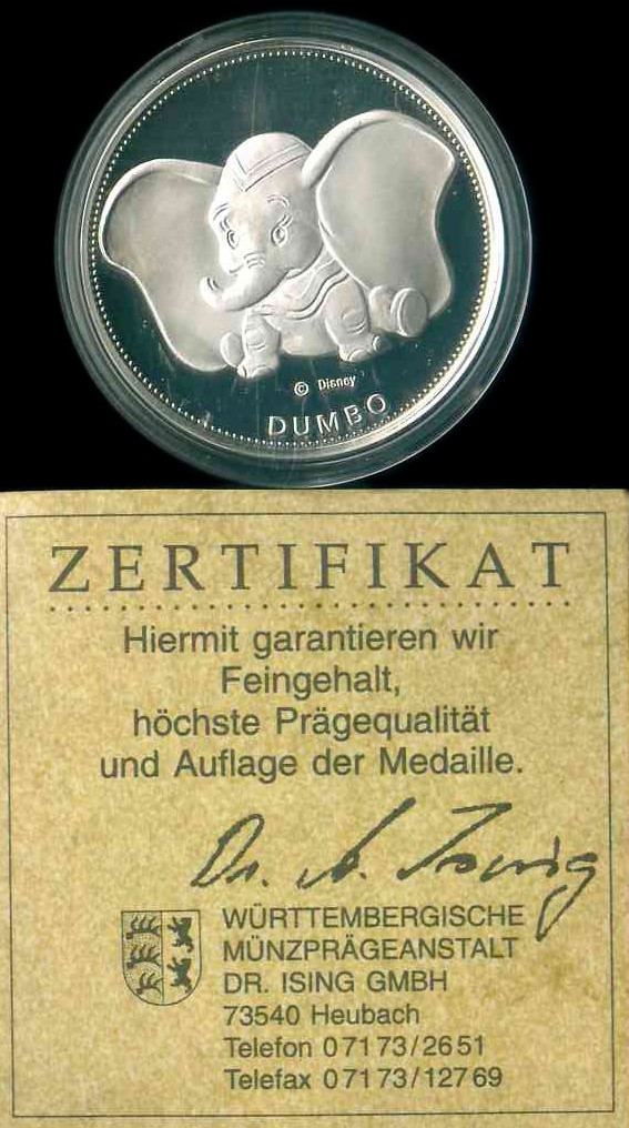 ND 迪士尼75週年(小飛象Dumbo)紀念銀章 Proof 編號:NIL(盒連証書)