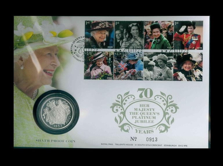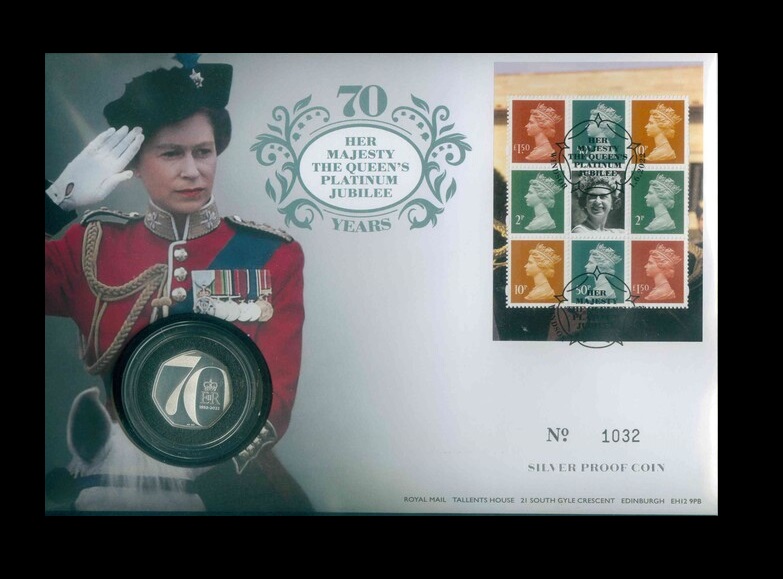 2022 英國伊莉莎白女皇二世登基70週年白金禧年銀幣紀念郵封 UNC 編號: NIL