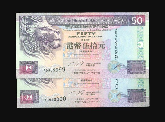 2003-10 香港上海匯豐銀行$20-$100 UNC 編號: DL000036…(同號,共5張)