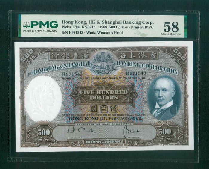 1977 香港渣打銀行 $500 PMG 58 EPQ 編號:Z/P 887763