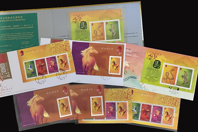 2002 香港郵政12生肖金銀郵票小型張(靈蛇駿馬) 品相如圖 編號:NIL(共8全)
