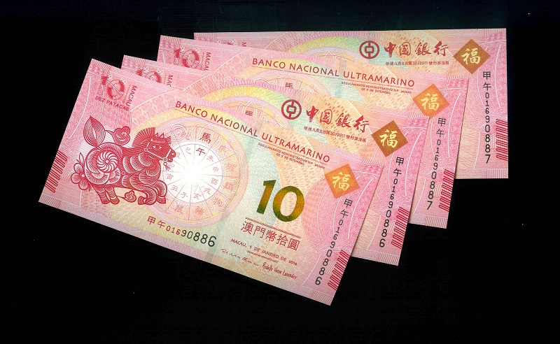 2014 澳門中國/大西洋銀行馬年生肖紀念鈔 10 Patacas UNC 編號:01690886-887…(共4張,2組各連/同號)