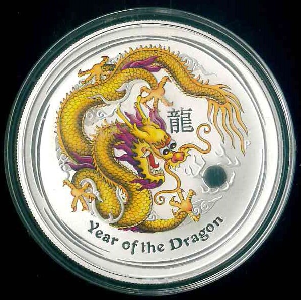 2012 澳洲龍年生肖彩銀幣 $1 (1oz 999 Silver) UNC 編號:NIL