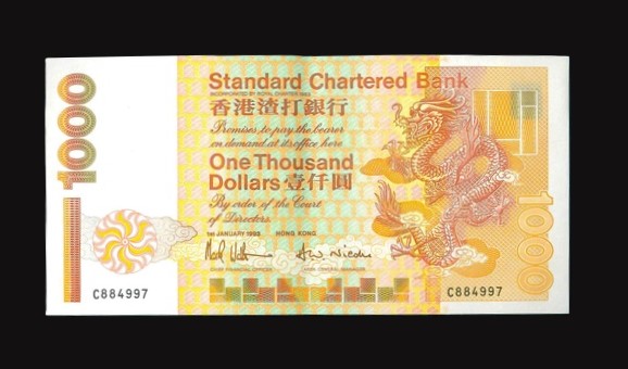 1993 香港渣打銀行 $1000 AU 編號:C884997