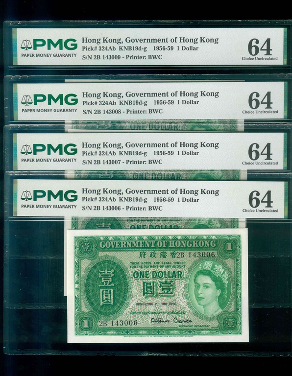 1956 香港政府 $1 PMG 64 編號:2B 143006-009(共4張,連號)