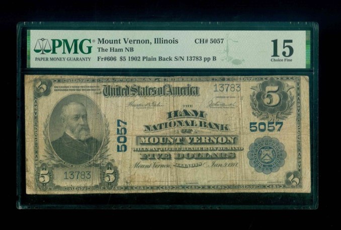 1902 美國伊利諾州 $5 PMG 15 編號:13783(第23任總統,原裝手簽)