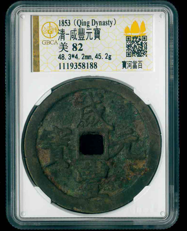 1853 清代 咸豐元寶-寶河當百 GBCA 美82