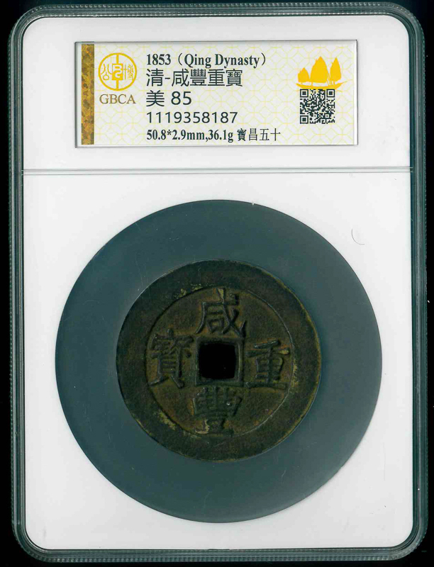 1853 清代 咸豐重寶-寶昌五十 GBCA 美85