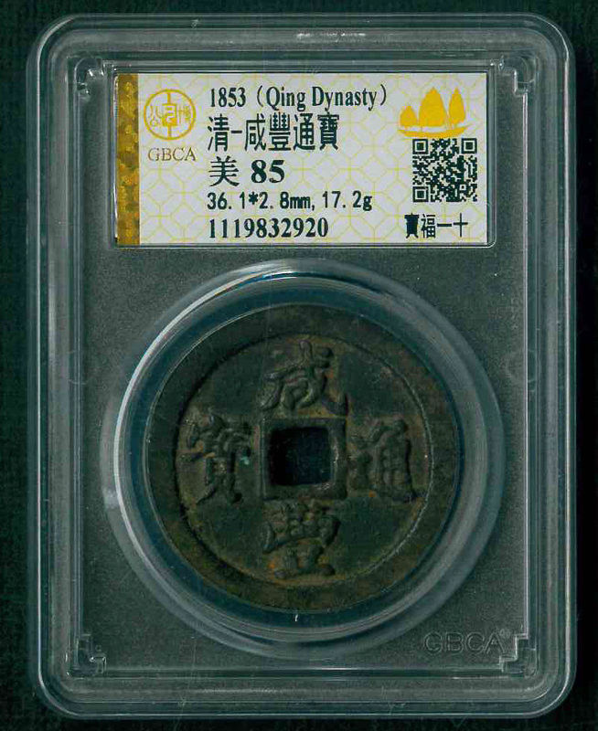1853 清代 咸豐通寶-寶福一十 GBCA 美85