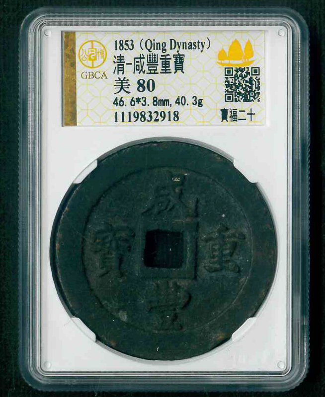 1853 清代 咸豐重寶-寶福二十 GBCA 美80