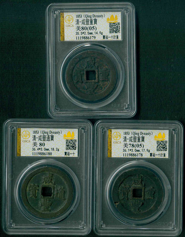 1853 清代 咸豐重寶-寶福一十計重/ 咸豐通寶-寶福一十 GBCA 美78(05)/ 美80(05)/ 美80, 共3枚