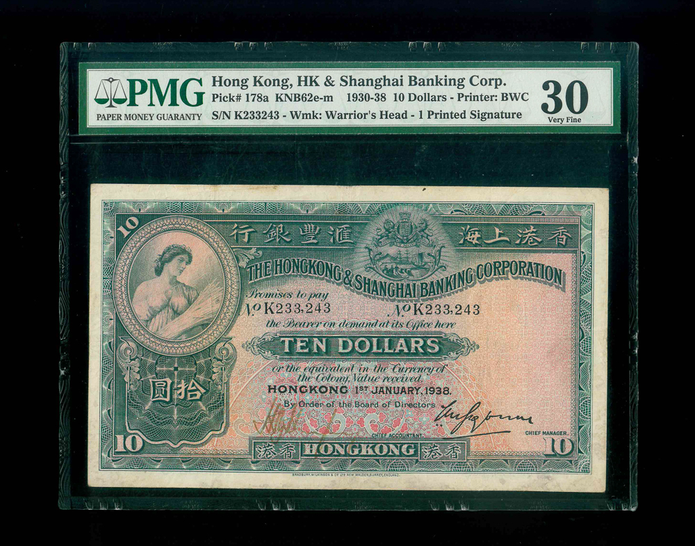 1938 香港上海匯豐銀行$10 PMG 30 編號: K233243, 手簽系列