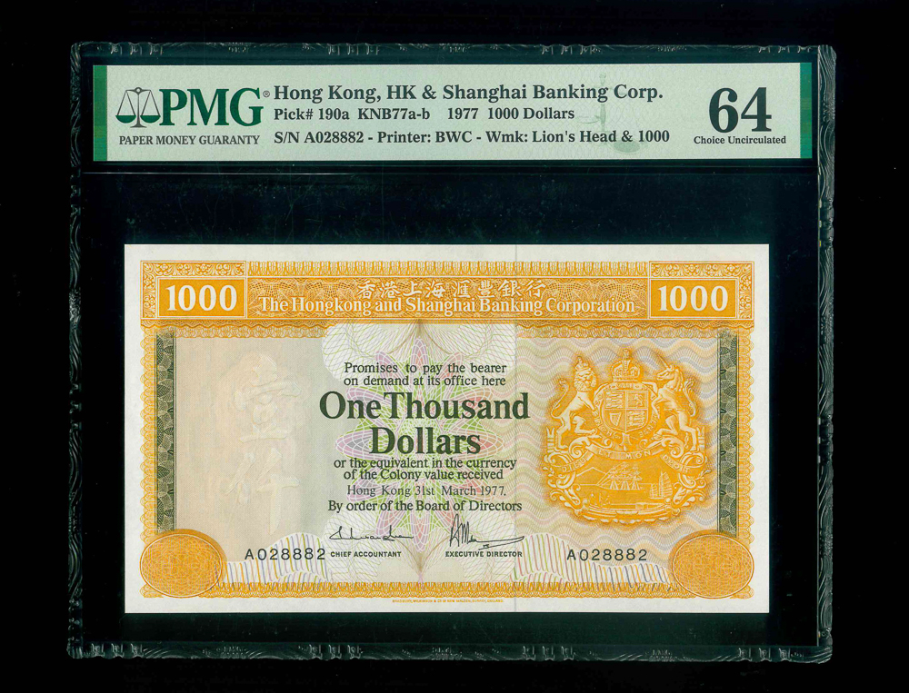 1977 香港上海匯豐銀行$1000 PMG 64 編號: A028882