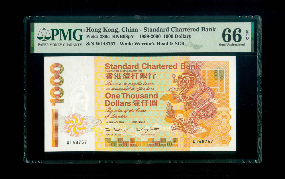 2000 香港渣打銀行$1000 PMG 66 EPQ 編號: W148757