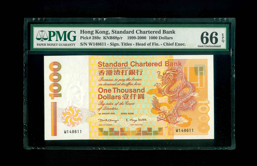 2000 香港渣打銀行$1000 PMG 66 EPQ 編號: W148611