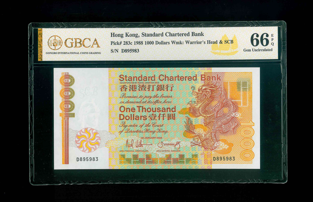 1988 香港渣打銀行$1000 GBCA 66 EPQ 編號: D895983