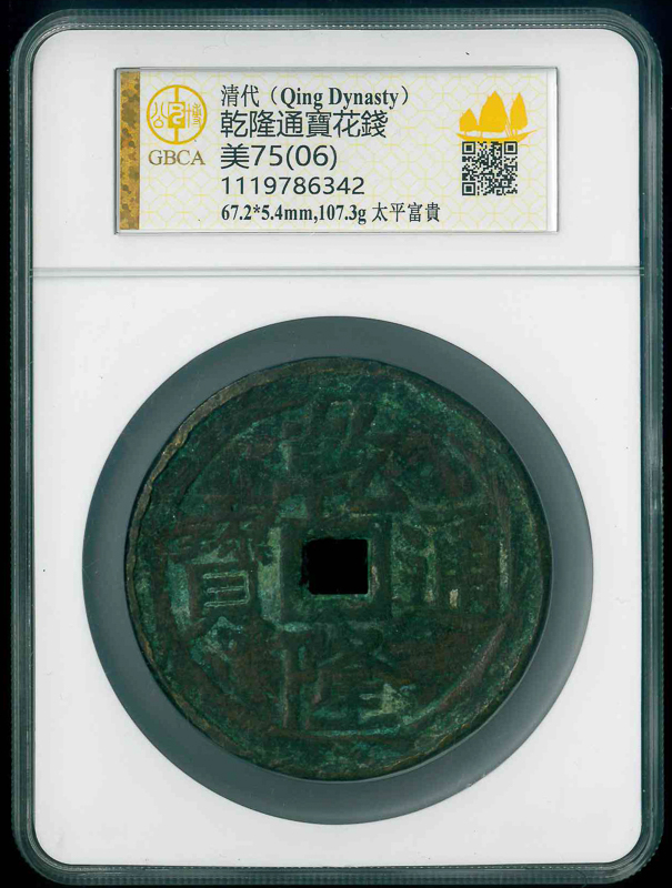 清代 乾隆通寶花錢-太平富貴 GBCA 美75(06)