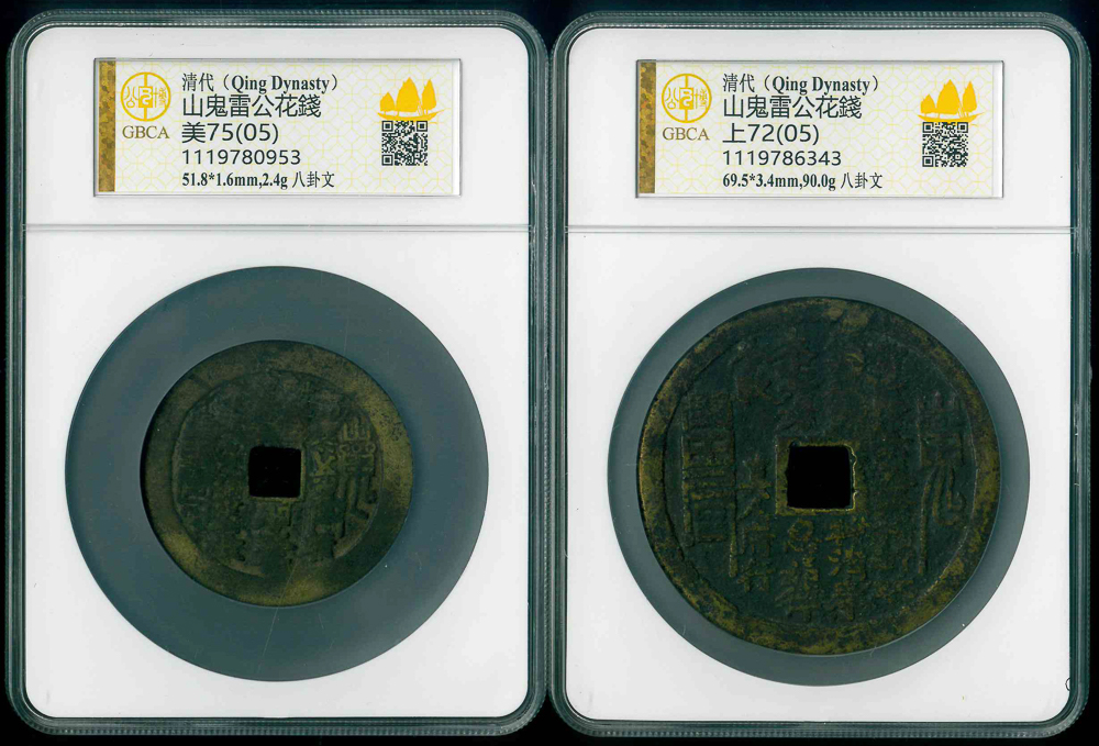 清代 山鬼雷公花錢-八卦文 GBCA 上72(05)/ 美75(05), 共2枚