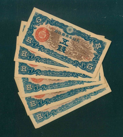 1945 日本軍票五錢 AU-UNC 編號: NIL(共6張)