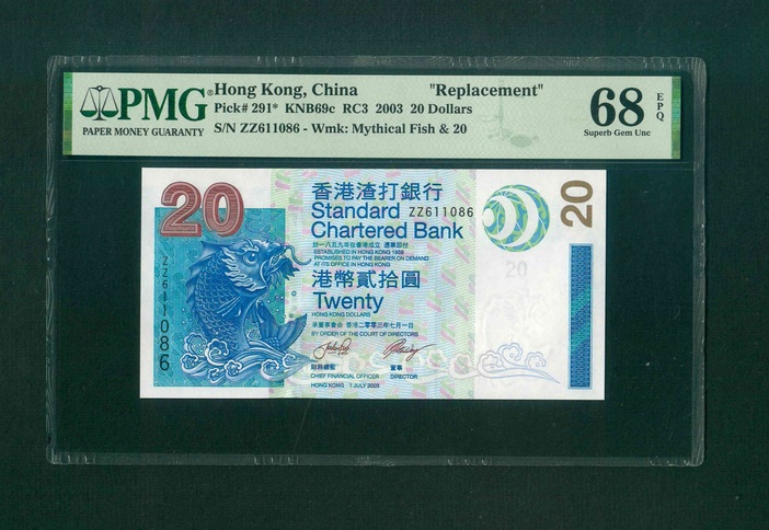 2003 香港渣打銀行 $20 PMG 68 EPQ 編號: ZZ611086(補版系列,頂級雪白)