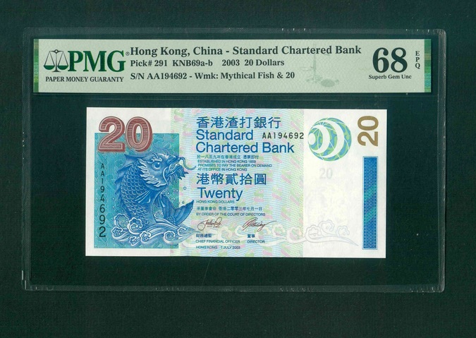 2003 香港渣打銀行 $20 PMG 68 EPQ 編號: AA194692(頭版系列,頂級雪白)