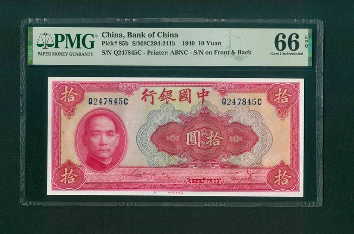 1940 中國銀行 $10 PMG 66 EPQ 編號: Q247845C(頂級雪白)