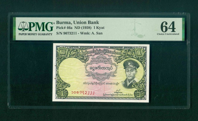 1958ND 緬甸 1 Kyat PMG 64 編號: 9073211