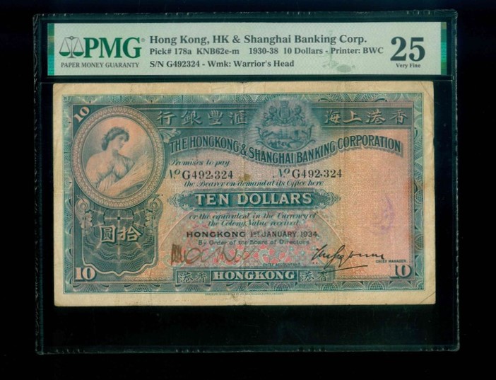 1934 香港上海滙豐銀行 $10 PMG 25 編號:G492324(Stamp Ink)