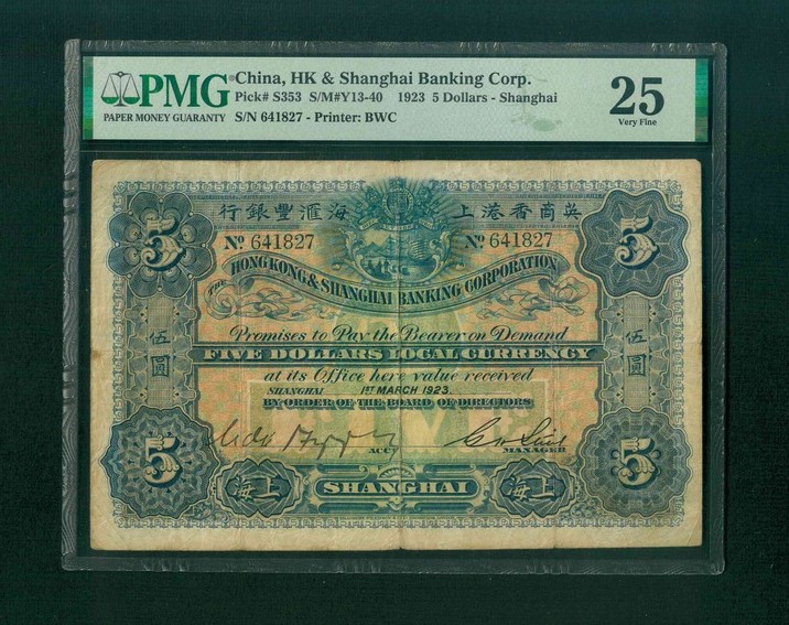 1923 英商香港上海滙豐銀行 $5 PMG 25 編號: 641827