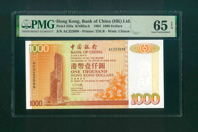 1994 中國銀行 $1000 PMG 65 EPQ 編號:AC323098(頂級雪白)