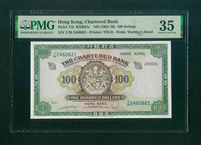 1961-70ND 香港渣打銀行 $100 PMG 35 編號:Y/M 2460821