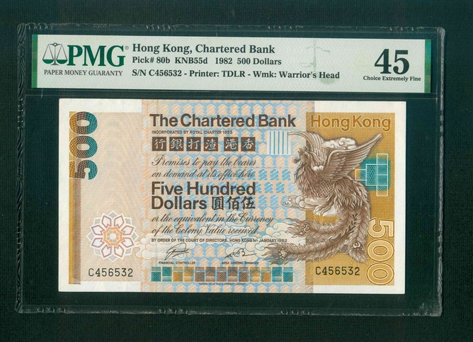 1982 香港渣打銀行 $500 PMG 45 編號:C456532