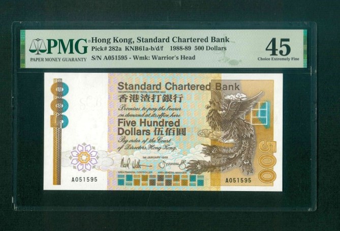 1988 香港渣打銀行 $500 PMG 45 編號:A051595