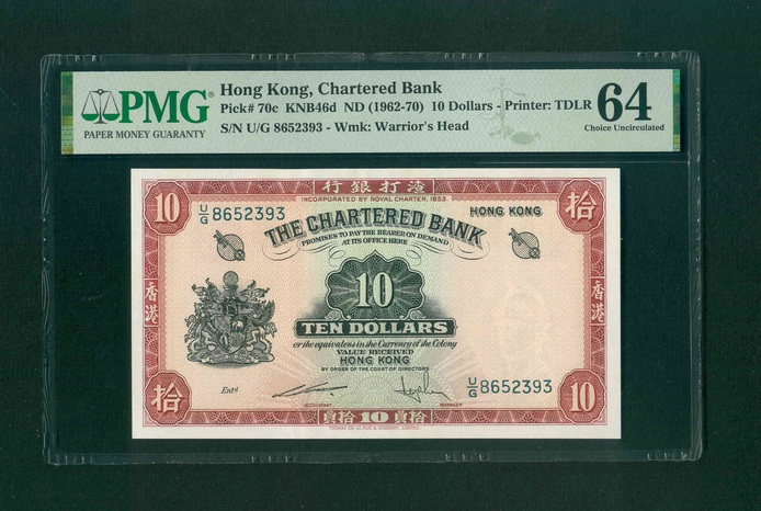 1962-70ND 香港渣打銀行 $10 PMG 64 編號:U/G 8652393