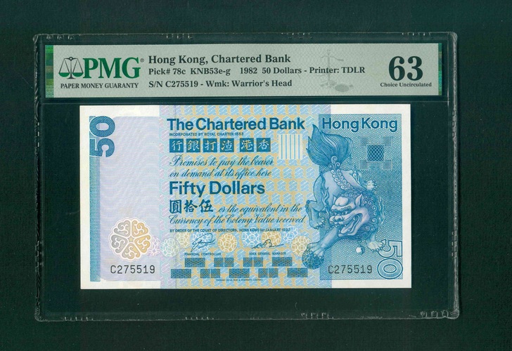 1982 香港渣打銀行 $50 PMG 63 編號:C275519