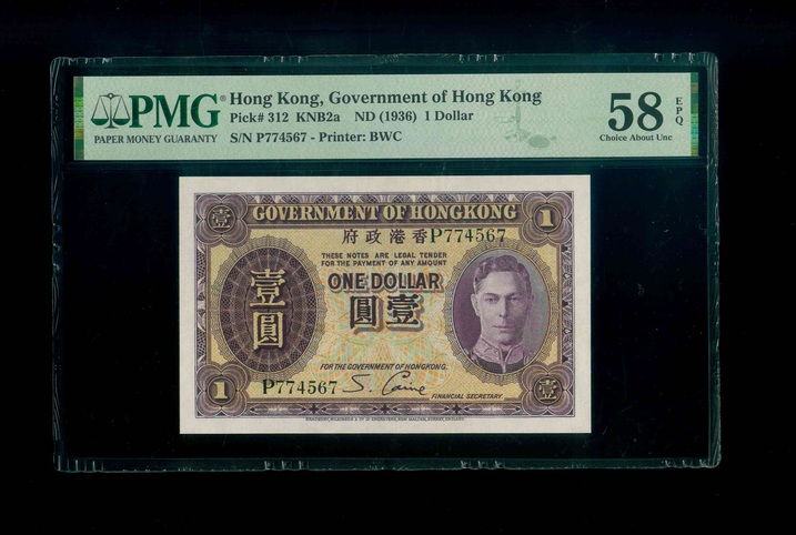 1936ND 香港政府 $1 PMG 58 EPQ 編號:P774567