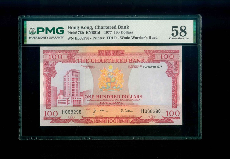 1977 香港渣打銀行 $100 PMG 58 編號:H068296