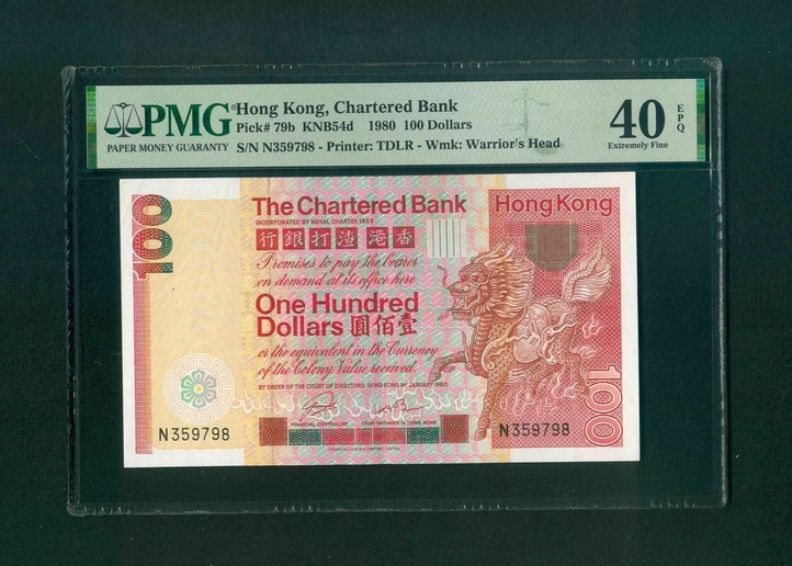 1980 香港渣打銀行 $100 PMG 40 EPQ 編號:N359798