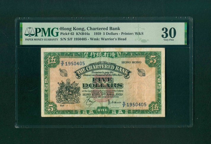 1959 香港渣打銀行 $5 PMG 30 編號:S/F 1950405