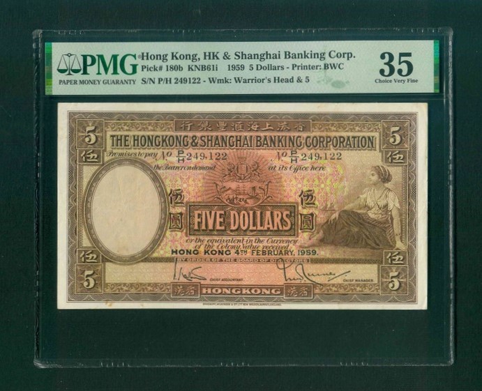 1959 香港上海滙豐銀行 $5 PMG 35 編號:P/H 249122