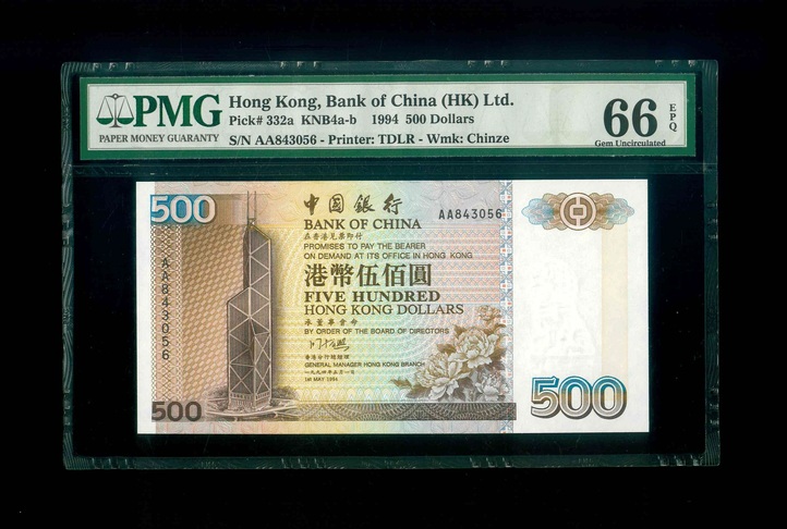 1994 中國銀行 $500 PMG 66 EPQ 編號:AA843056(頭版系列)