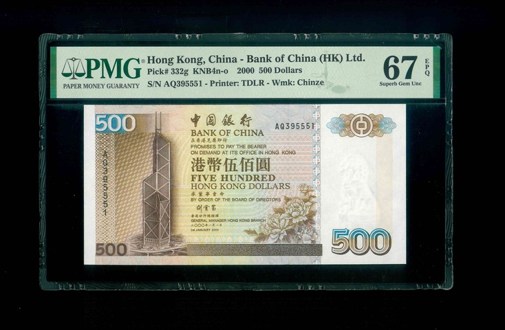 2000 中國銀行 $500 PMG 67 EPQ 編號:AQ395551(頂級雪白)