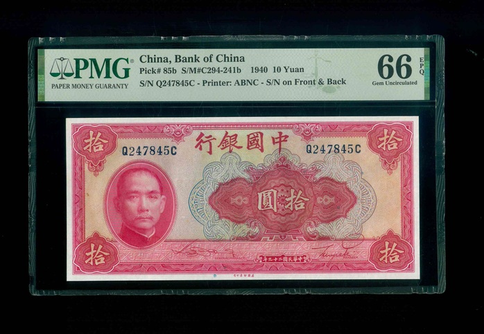 1940 中國銀行$10 PMG 66 EPQ 編號: Q247845C(頂級雪白)