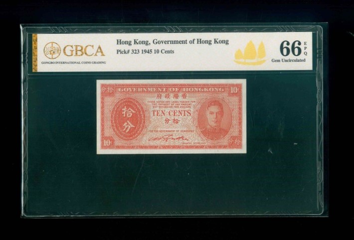 1945ND. 香港政府 拾分 GBCA 66 EPQ 編號: NIL(頂級雪白)