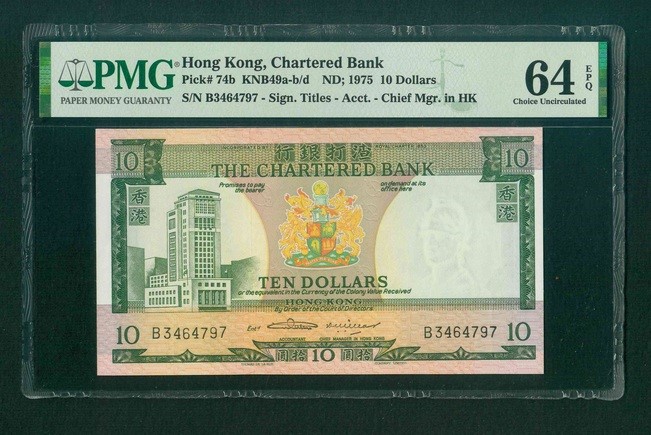 1975ND 香港渣打銀行 $10 PMG 64 EPQ 編號: B3464797