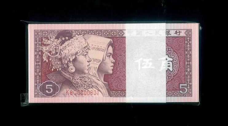 1980 中國人民銀行 五角 編號:K8G0000801-900(百連號,頂級雪白)