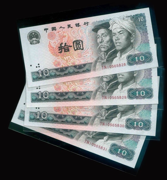 1980 中國人民銀行 $10 UNC 編號:JN10565828-31(共4張,補版連號)