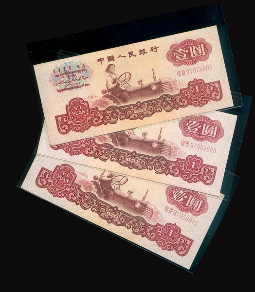 1960 中國人民銀行 $1 UNC 編號:VIII III 91959808-10(共3張,連號)