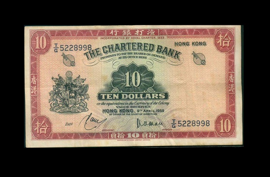1959 香港渣打銀行 $10 VF+ 編號:T/G 5228998