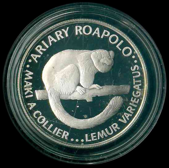 1988 馬達加斯加銀幣 20 Ariary (野生動物保護系列-領狐猴) 品相如圖 編號:NIL